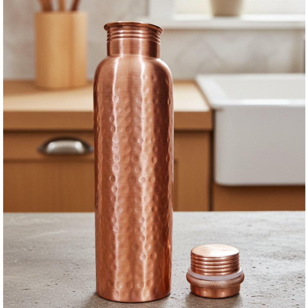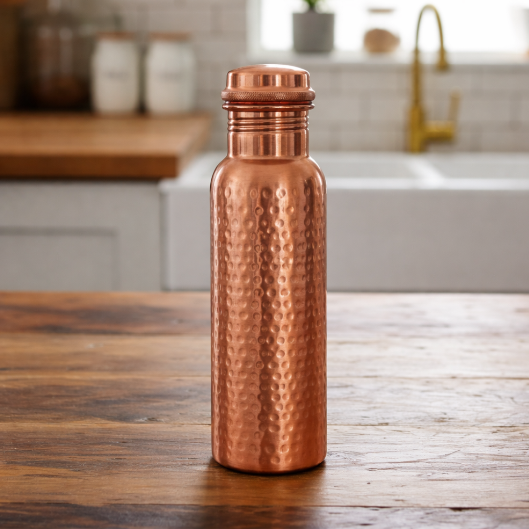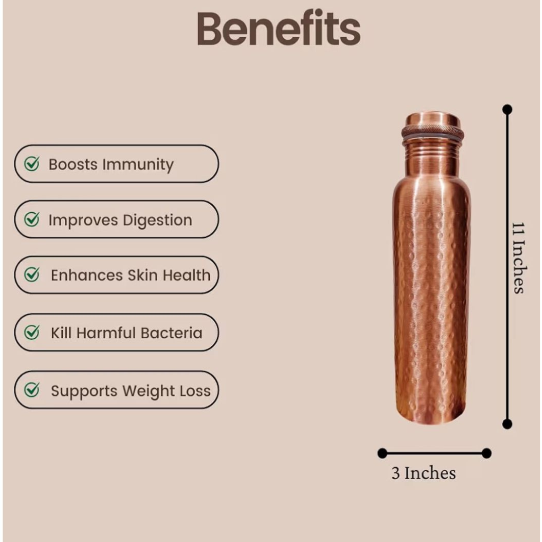 Choose this Ayurvedic Hammered Copper Water Bottle for a healthy, sustainable lifestyle – combining elegance with wellness.