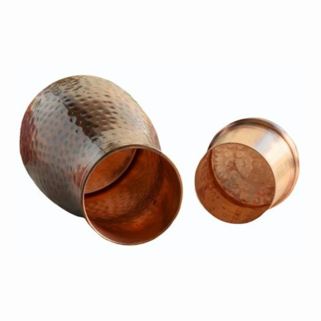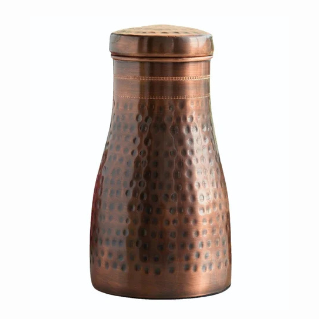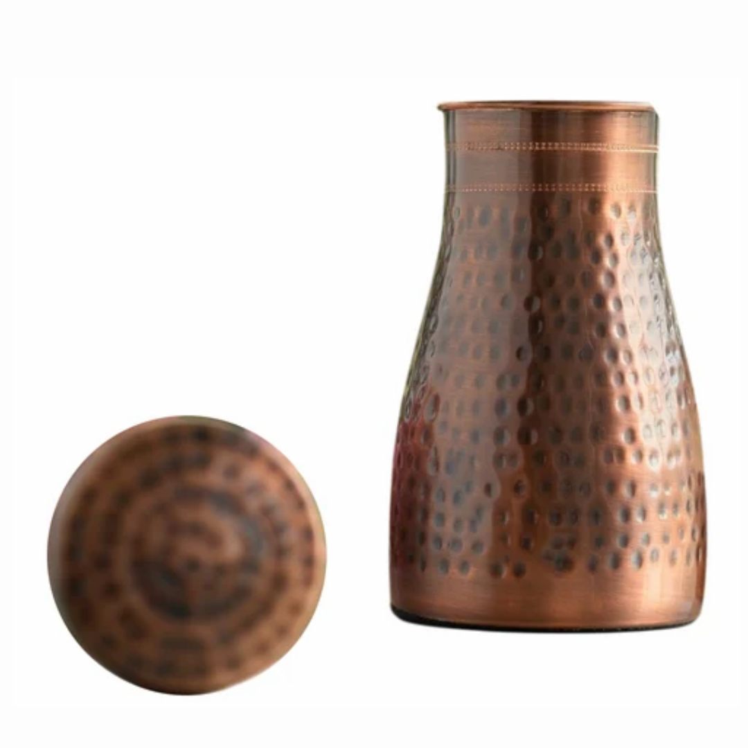 Experience the ancient wisdom of Ayurveda with our Pure Brown Copper Hammered Water Bottle -1000 ML . Handcrafted from 100% pure copper, this elegant Ayurvedic pitcher is designed to store and serve water the traditional way while offering numerous health benefits.